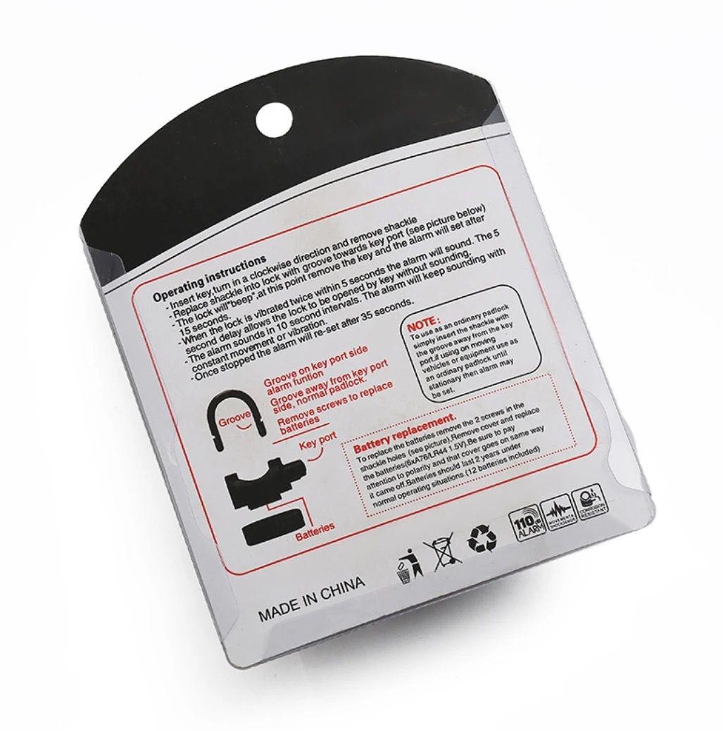 Cerradura de alarma impermeable sirena de alarma y cerradura. Color: negro