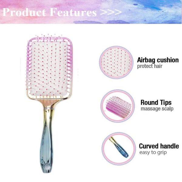 Cepillo plastico para el cabello triColor con cojin de aire para desenredar cuadrado. Color: unico Color