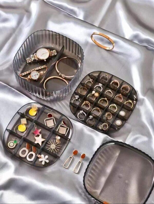 Caja organizadora de embalaje de joyeria compartimiento de 3 capas. Color: transparente